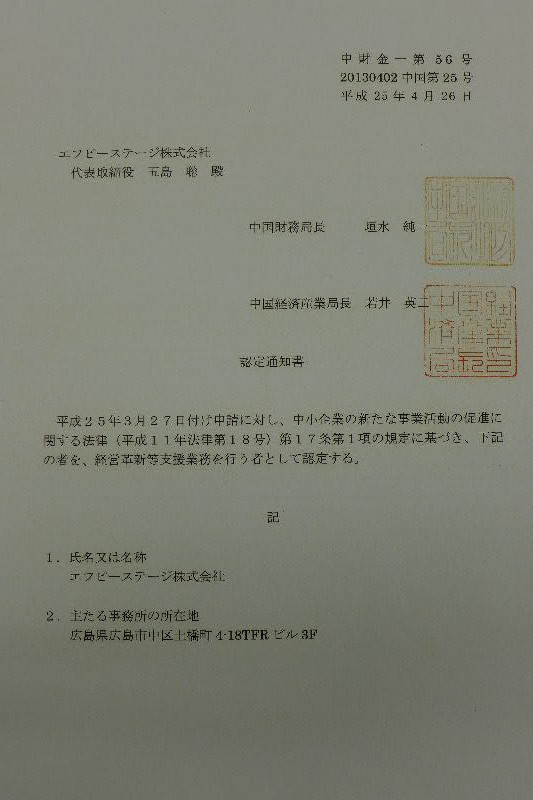 エフピーステージ株式会社は経営革新等支援機関に認定されました。保険代理店でこの認定を受けたのはエフピーステージ株式会社が日本初だろうと思います。