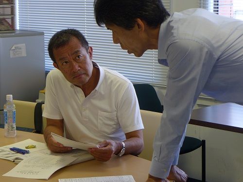 写真真ん中が経営者。手にしているのは1月8日付『日本経済新聞」朝刊の経済面です。